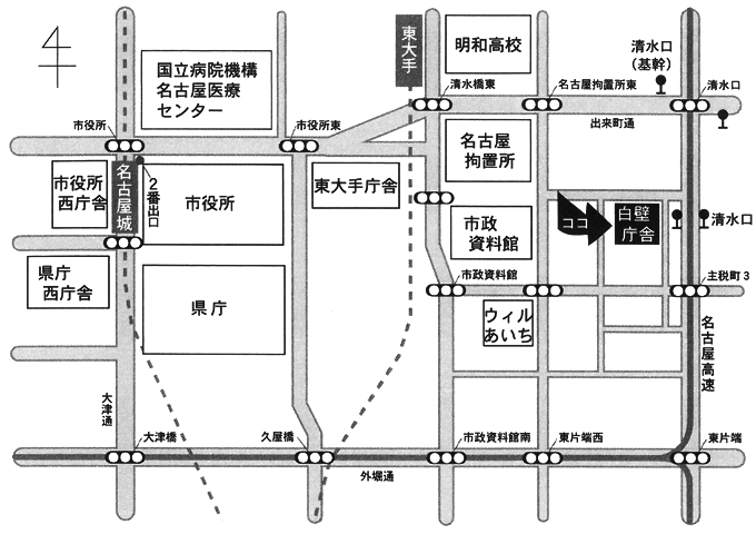 ◆地下鉄名城線「名古屋城」2番出口から東へ徒歩約10分